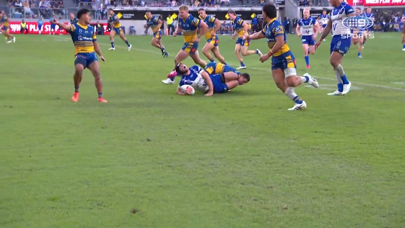 Matt Burton screams in agony after an awkward tackle from Mitchell Moses.