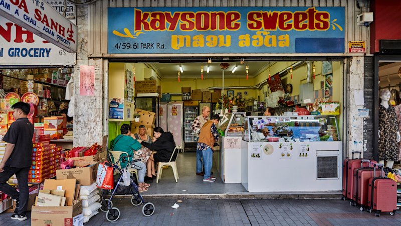 Kaysone Sweets in Freedom Plaza offers a variety of Laotian snacks, including banana fritters and sien savanh. Customers can also enjoy durian smoothies and customizable shaved ice desserts. The popular tum mak hoong set features spicy papaya salad, sticky rice, sien savanh, and Lao sausage.