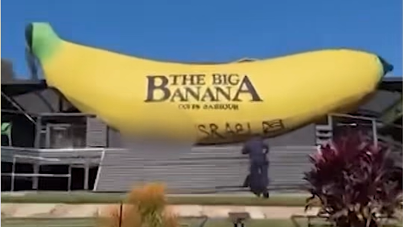 Police are investigating anti-Israel graffiti discovered on the Big Banana in Coffs Harbour over the weekend. The vandalized attraction featured the phrase “f--- Israel” and a Palestine flag, prompting concerns about whether the incident constitutes hate speech. Individuals sharing images of the graffiti on social media may be subject to scrutiny under new hate speech.