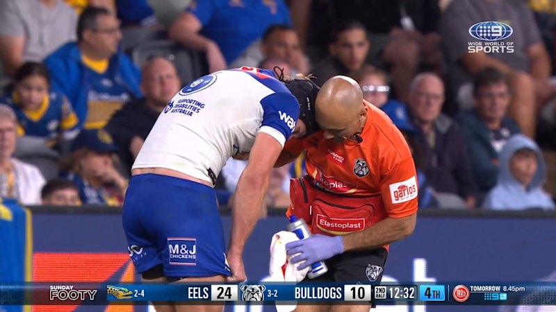 Matt Burton receives medical attention after a slight head knock.