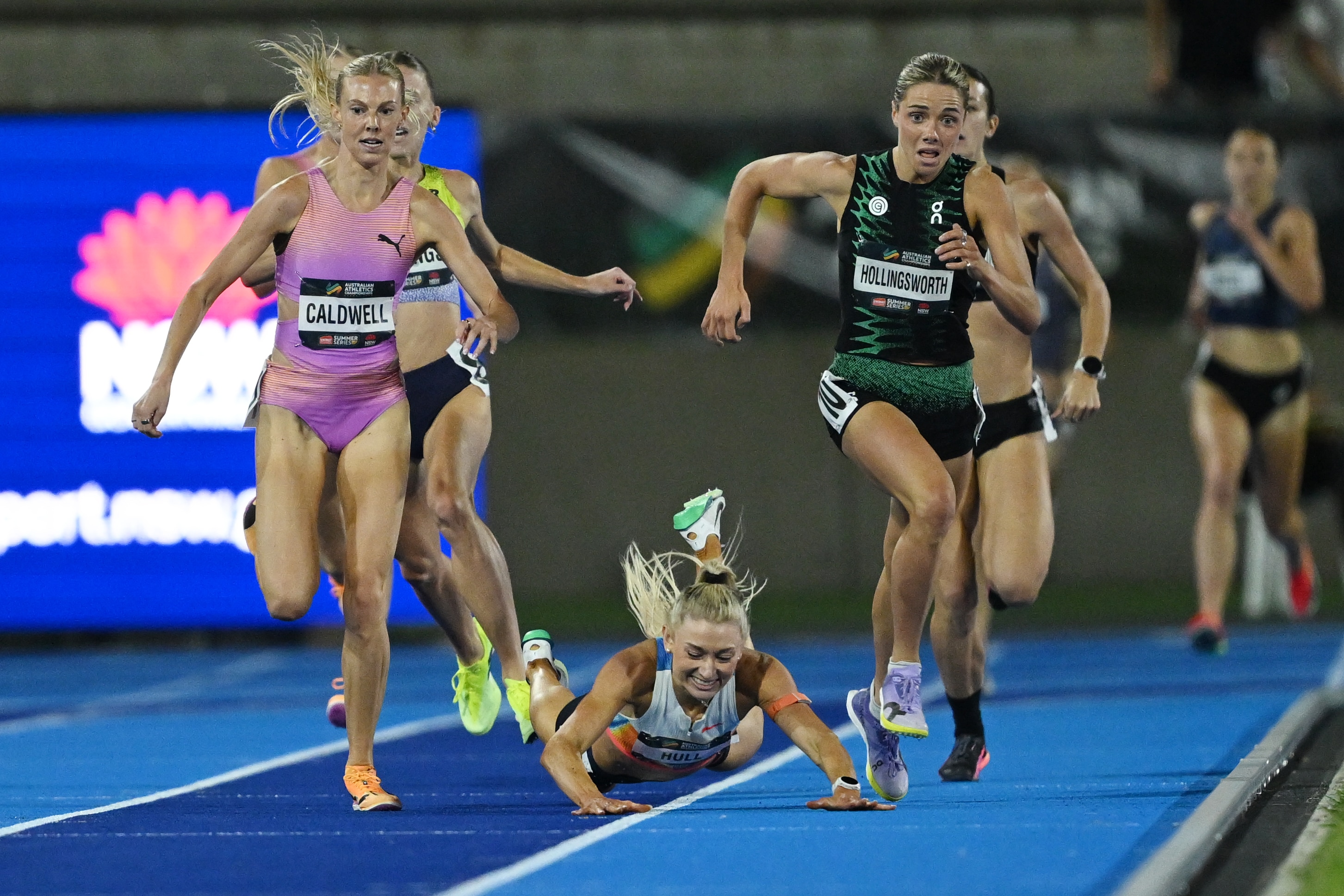 Jess Hull fell in the final 50 meters of the 1,500m final at the Australian Athletics Championships in Sydney on Saturday. Claudia Hollingsworth, who finished first, was disqualified after a successful appeal. Hull's bid for a fourth consecutive title ended with her finishing 11th as she prepares to compete in the upcoming 800m event.