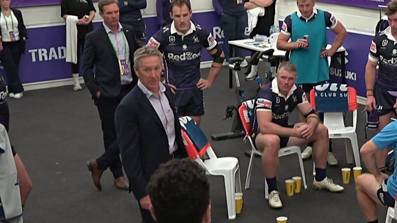 The Melbourne Storm coach stalks the room before launching into his players.