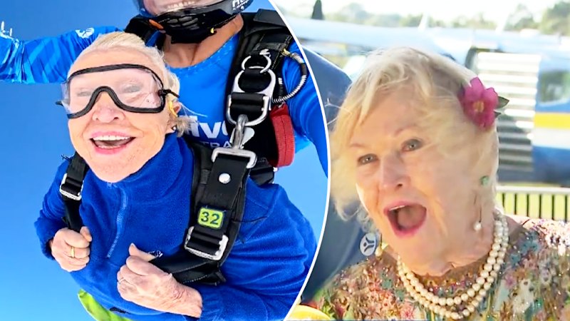 Catherine Mount is kicking granny-goals as she explains where her love of skydiving began.